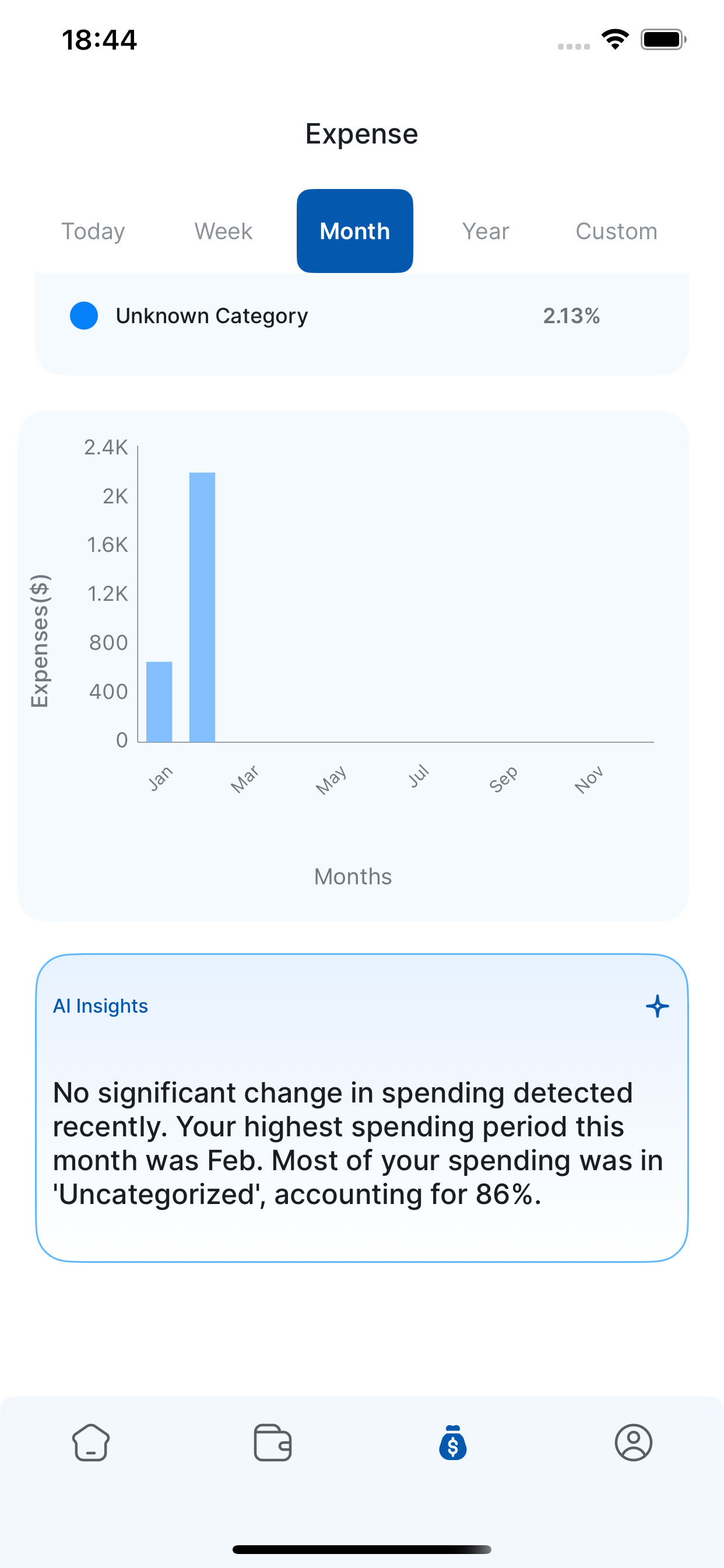 The iOS app is shaped around quick transaction follow-up, receipt OCR, analytics, and account-level actions that happen closest to the spend event.