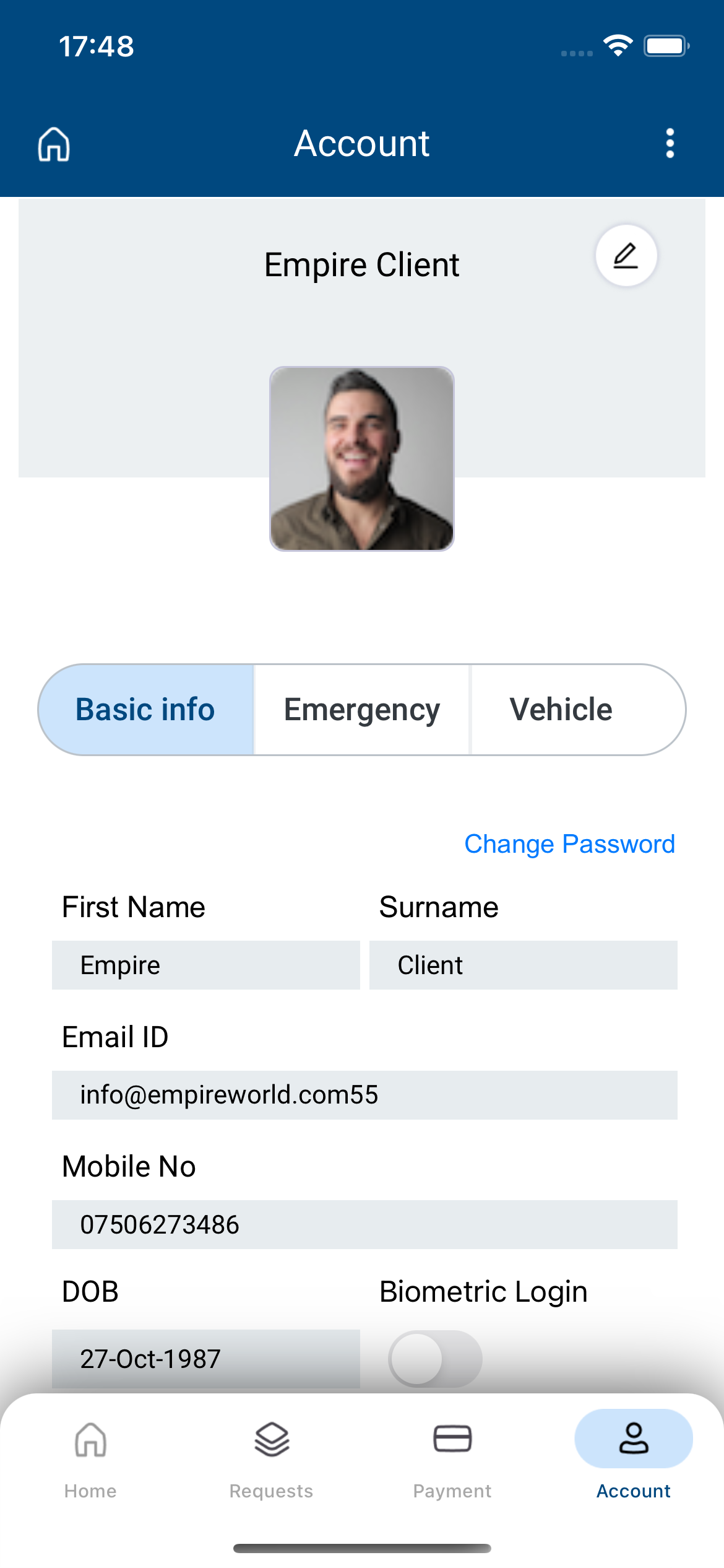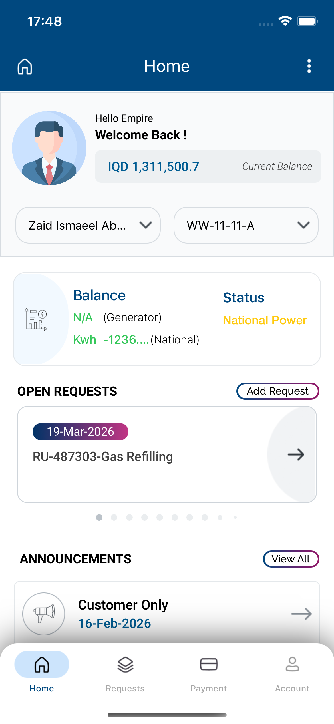 Empire World functions as a resident and customer portal in a property or community-management context. The app had to support routine operational tasks such as billing, requests, announcements, and account management while remaining accessible across multiple languages and payment preferences.