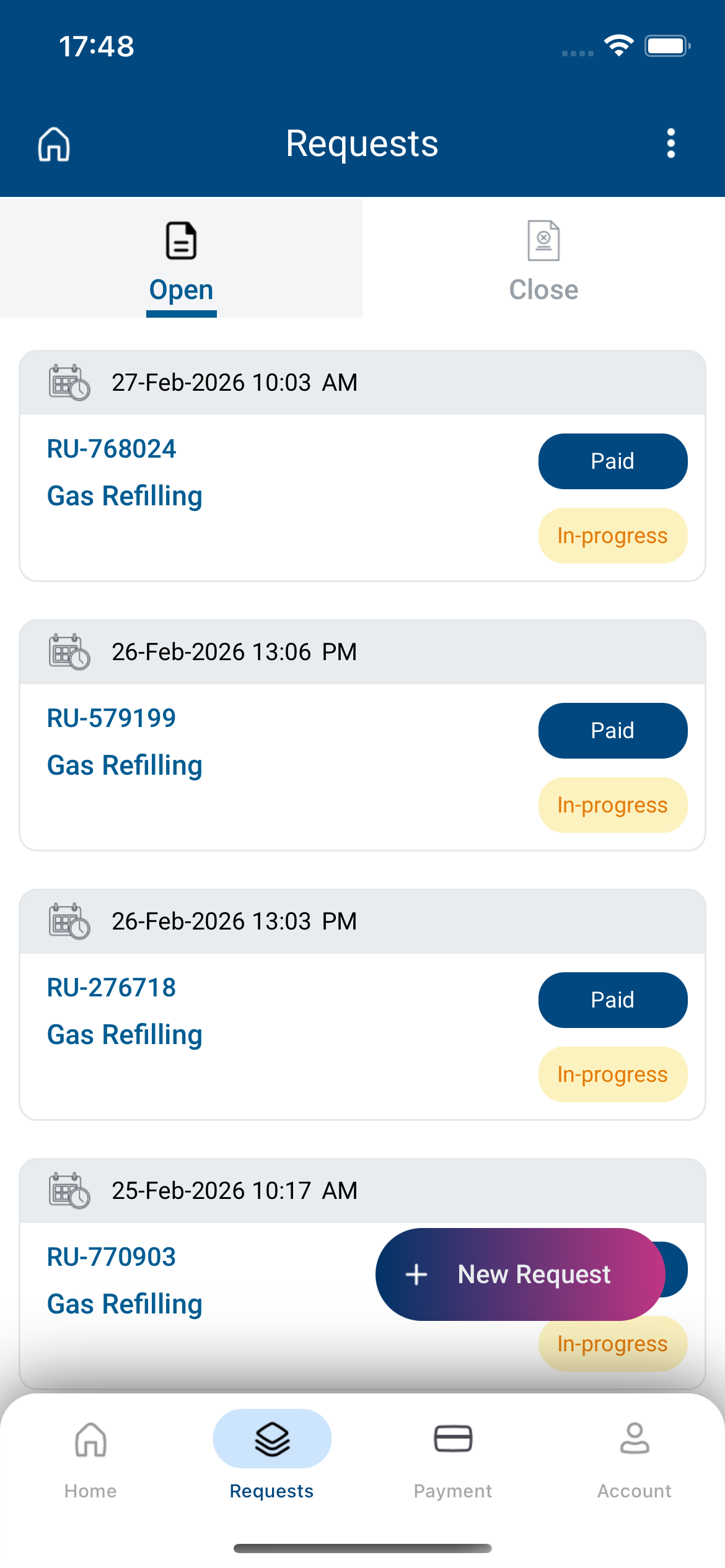 The app combines financial visibility, request handling, and account management into one resident-facing operational flow.