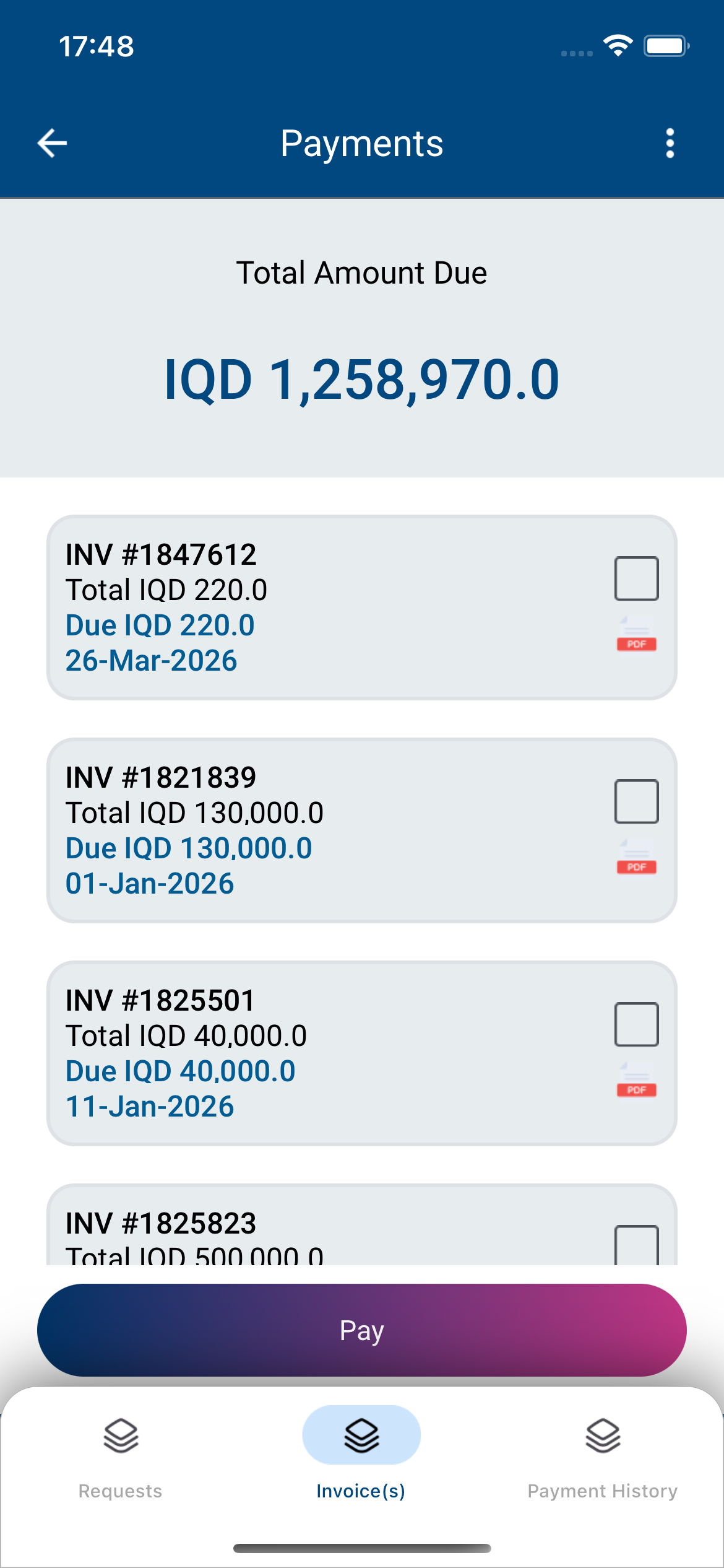 Invoice review, payment history, HyperPay card processing, FIB deep links, and receipt generation were combined to reduce friction around billing and transaction follow-up.
